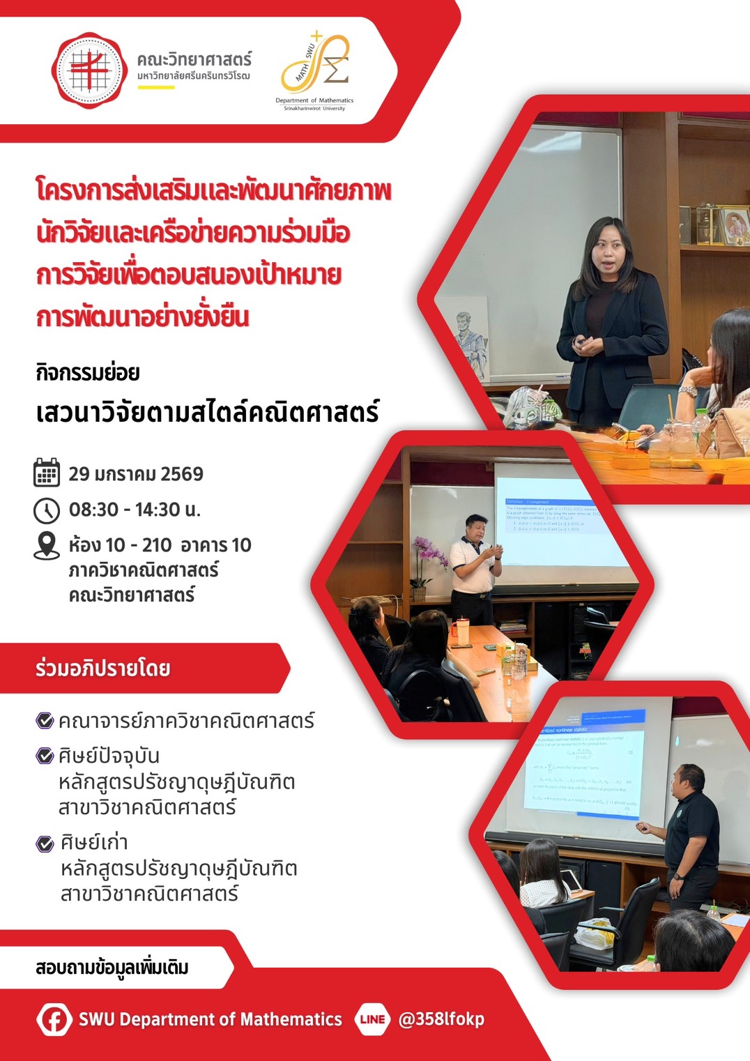 เมื่อวันพฤหัสที่ 29 มกราคม 2569 ณ ห้องประชุม 10-210 ภาควิชาคณิตศาสตร์ คณะวิทยาศาสตร์ มหาวิทยาลัยศรีนครินทรวิโรฒ
